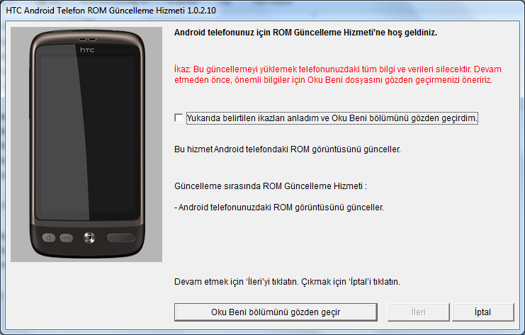 - İndirmiş olduğunuz HTC RUU dosyasını çalıştırın