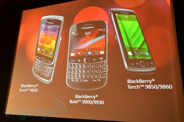 BlackBerry Bold 9900 ve 9930 modelleri, tasarımlarında alışılmış klavyeye yer veriyorlar, ancak ekranları da dokunmatik. Bunlar klasik Bold serisinin karakteristiklerini yaşatmaya devam ediyorlar. Öte yandan BlackBerry Torch 9810, tıpkı bir önceki model Torch 9800 gibi kayarak açılan bir klavyeye sahip. Tamamen yeni olan BlackBerry Torch 9850 ve 9860 modelleri ise, modern akıllı telefonlarda görmeye alıştığımız tamamen dokunmatik ekranlı arabirime sahipler ve klavyeleri yok. Tüm bu yeni modellerin önümüzdeki aylarda RIM’in dünya çapında anlaşmalı olduğu servis sağlayıcıların ürün portföyüne girmesi ve tüketicilere sunulması bekleniyor.