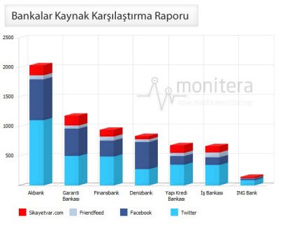 Online medya takibi ve raporlama hizmeti veren Monitera, Türkiye’de faaliyet gosteren bankalar hakkında sosyal ağların da dahil olduğu online mecralarda en çok nelerin konuşulduğunu araştırdı. Monitera’nın yaptığı analizde bankalar hakkında konuşmaların en çok Twitter, Facebook ve Şikayetvar.com üzerinde gerçekleştiği ortaya çıkıyor. Yapılan konuşmalar incelendiğinde ise kullanıcıların sosyal medyada daha çok negatif içerikleri paylaşmayı tercih etmeleri dikkat çekiyor. Bankacılık hizmetleri şikayetlerinde ise en çok hesap işletim ücreti sorunu gündeme getiriliyor.