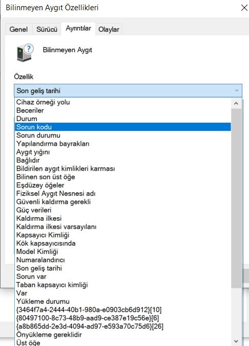 - İstediğiniz Cihaza çift tıklayın > Ayrıntılar > Özellik > Donanım kimlikleri seçtiğinizde cihazın donanım kimliklerini görebilirsiniz.
