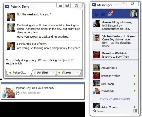 Eğer kullanıcı isterse tek tıklamayla zaten açık olan Facebook hesabına büyük tarayıcı penceresinden ulaşabiliyor ve daha kapsamlı etkileşimde bulunabiliyor. Bugünlerde çoğu kullanıcının haberleşmek için Facebook’u kullandıklarını ve arkadaş listelerinin kabarık olduğunu düşünürseniz, bu hiç de fena bir fikirmiş gibi görünmüyor. Şimdilik sadece Windows 7 için Beta testi yapılan uygulama eğer yeterince başarılı olursa Mac OS X ve diğer benzeri işletim sistemlerine de uyarlanacak.