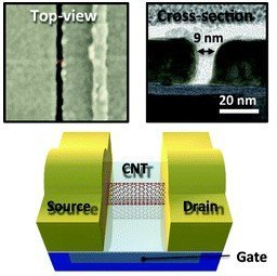 9 Nanometrelik karbon nanotüp transistörler daha az elektrik tüketiyor, daha yüksek dirençlere dayanabiliyor ve elektronik devrelerin ömrü silikon teknolojisindençok daha uzun oluyor.