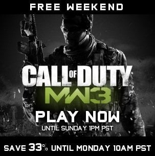 Ama şimdi elinizi çabuk tutun! Activision, Steam ile yaptığı ortak çalışma ile bugün Pasifik saati sabah 10.00’dan itibaren tüm haftasonu boyunca Modern Warfare 3’ün Multiplayer’ını ücretsiz olarak deneme hakkı tanıyor. Sadece Steam üyesi olmanız yeterli. Ayrıca yaptıkları inidirim ile 70 dolar olan oyunu, 47 dolar olan indirimli fiyatı üzerinden satın alabilme imkanı tanıyor.