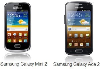 Henüz fiyatları açıklanmayan yeni Galaxy Mini 2 ve Galaxy Ace 2 cep telefonları önümüzdeki aylarda Avrupa’da, ardından bütün dünyada satışa çıkacak.