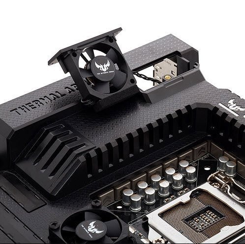 ASUS Sabertooth Z77’in üzerini kaplayan bu zırh anakarta harika bir görünüm veriyor ama elbette tek amacı bu değil. Termal zırh sayesinde anakart bileşenlerinin üzerindeki hava akışı şekillendiriliyor. Kutudan çıkan iki adet 5 santimetrelik fan, anakarta takıldığında güçlü bir soğutma sağlıyor. Bu fanların takılması bir zorunluluk değil ancak fanlar, termal zırh ile birlikte çok güçlü bir soğutma sağlıyor.