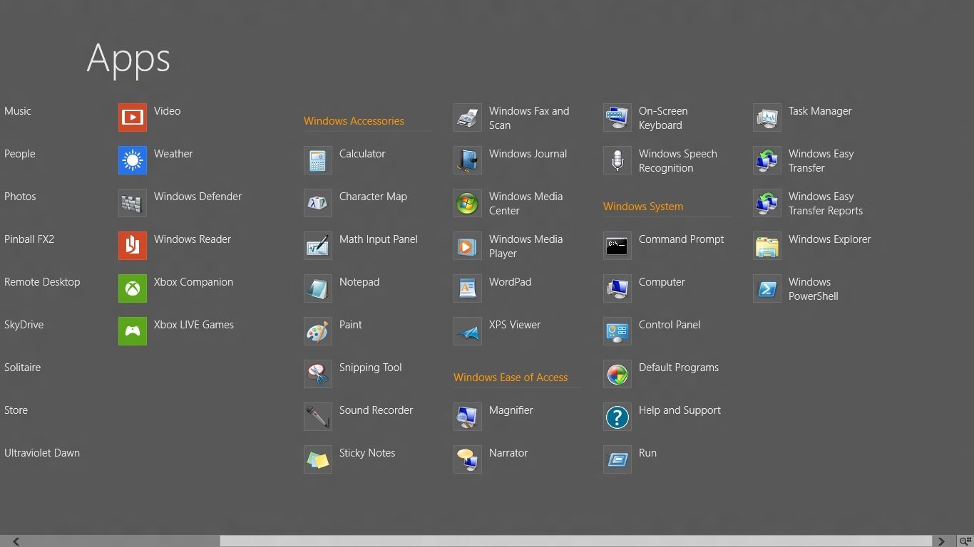 Metro arayüzün en çok şikayet edilen noktalarından biri, istenilen bir programa ulaşmanın uzun olması. Normal koşullar altında buna katılabilirdim ancak Metro arayüzündeki “All apps” seçeneği bu sorunu da ortadan kaldırıyor. Arayüz’ün herhangi boş bir noktasına sağ tıklayıp açılan alt menüden “All apps” seçeneğini seçerseniz çoğu Microsoft uygulamasını ve kendi sabitlediğiniz uygulamaları yek bir ekranda görebiliyorsunuz.