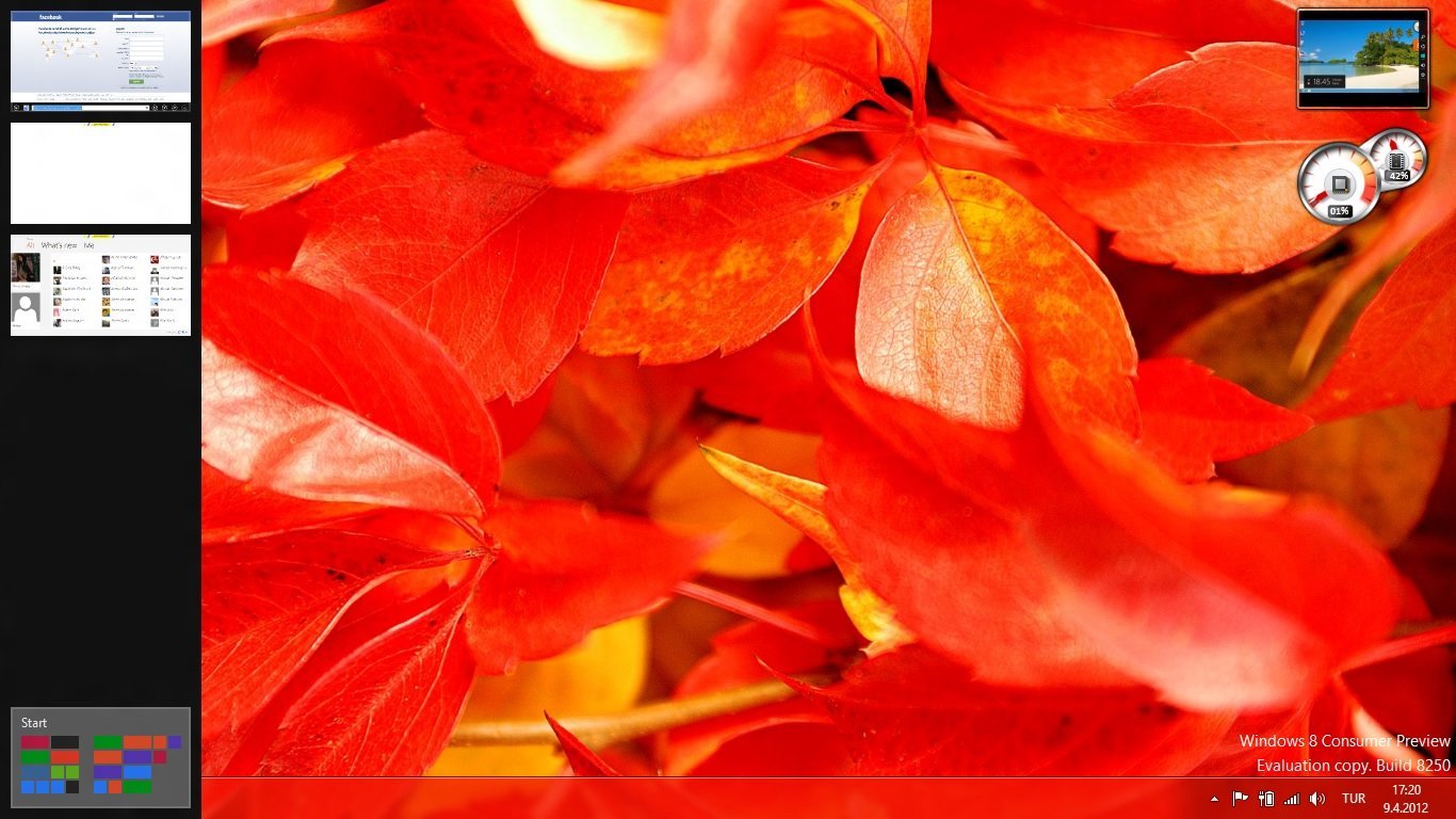 Bu kadar kişiselleştirmeden sonra sıra biraz faydalı ipuçlarında. Öncelikle belirtmek istediğim şey klasik masaüstünde görev çubuğunda olması gereken “Masaüstünü göster!” dikdörtgeninin görünmemesi. Ancak işlev tuşu halen çalışıyor. Yani dikdörtgeni görmediniz diye Windows 8’e saydırmayın.
