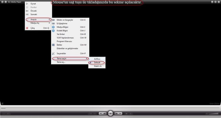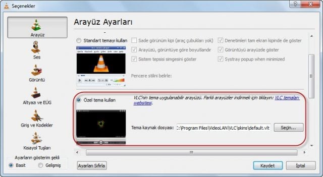 Bu işlem de bittikten sonra, artık VLC’nin skins klasörüne taşıdığınız tüm temaları, “Arayüz” bölümünden görebilir ve dilediğinizi seçip kullanabilirsiniz. Bunu nasıl yapacağınıza dair kısa bir anlatım da aşağıya ekledim. Hatırlatayım, temayı her değiştirdiğinizde VLC’yi kapatıp açmanız gerekiyor.