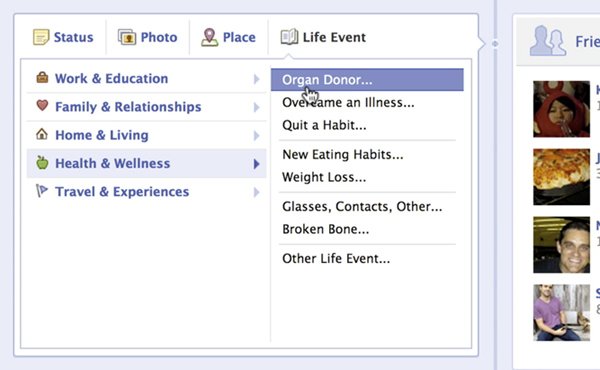 Facebook’un Organ Donor yani organ bağışçısı özelliği henüz ülkemizde kullanıma açılmadı. Açıldığında kullanıcılar organ bağışçısı olmaları durumunda bunu Zaman Tüneli üzerinde gösterebilecekler.Amerika ile başlayan uygulama kısa süre içerisinde bütün dünyada kullanılabilir hale gelecek.