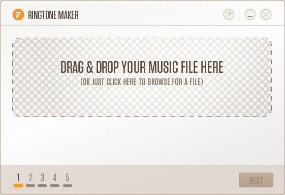 1. Adım: Zil sesi) yapmak istediğiniz bir şarkıyı penceredeki “Drag & Drop Your Music File”a sürükleyin. Ya da başka bir yöntemle, bu yazının üzerine tıklayın ve şarkıyı seçin tamamlayın ve “Next”e tıklayın.