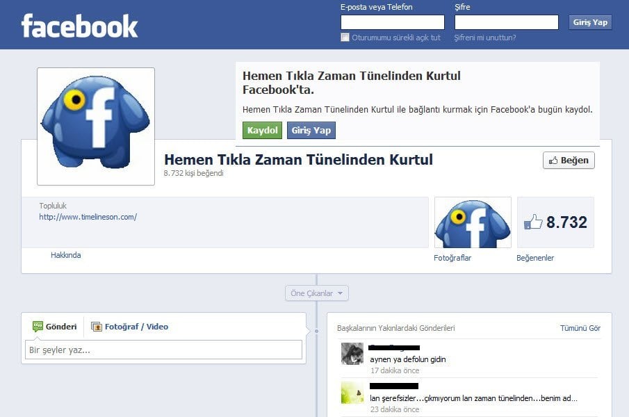 Facebook sayfaları, grupları ve kullanıcı hesapları Facebook tarihinde görülmemiş çapta bir Spam saldırısı altında. Timelineson isimli siteye ve Facebook sayfasına giden bağlantılar, kullanıcıların hesapları üzerinden sayfalara, fotoğraf altı yorumlarına ve akla gelebilecek her yere yağıyor.