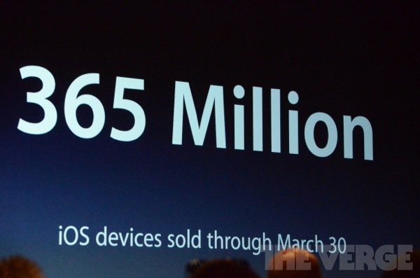Apple’ın düzenlemiş olduğu WWDC 2012’de pek çok Apple ürünü tanıtıldı. Ürün tanıtımlarının dışında da çeşitli bilgiler verildi Apple ile ilgili. Apple’ın iOS’ten sorumlu müdürü Scott Forstall’ın duyurduğu üzere şimdiye kadar 365 milyonun üstünde iOS cihazı satıldı.
