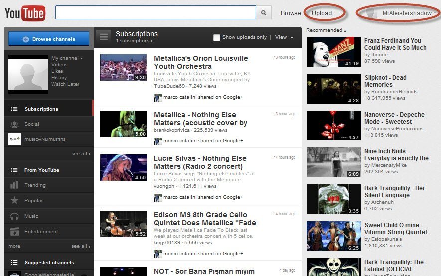 YouTube Hesabınıza Girin ve Çektiğiniz Video'yu Yüklemek için Upload Tuşuna Tıklayın