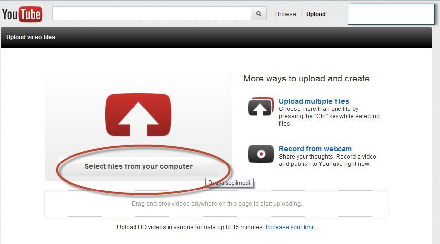 YouTube Hesabınıza Girin ve Çektiğiniz Video’yu Yüklemek için Upload Tuşuna Tıklayın
