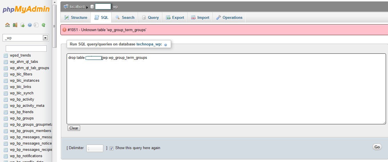 Not: Mysql’de komutu girdikten sonra #1051 – Unknown table ‘wp_group_term_groups’ türü bir hata alabilirsiniz, ancak hayalet tablo ortadan kalkmıştır.