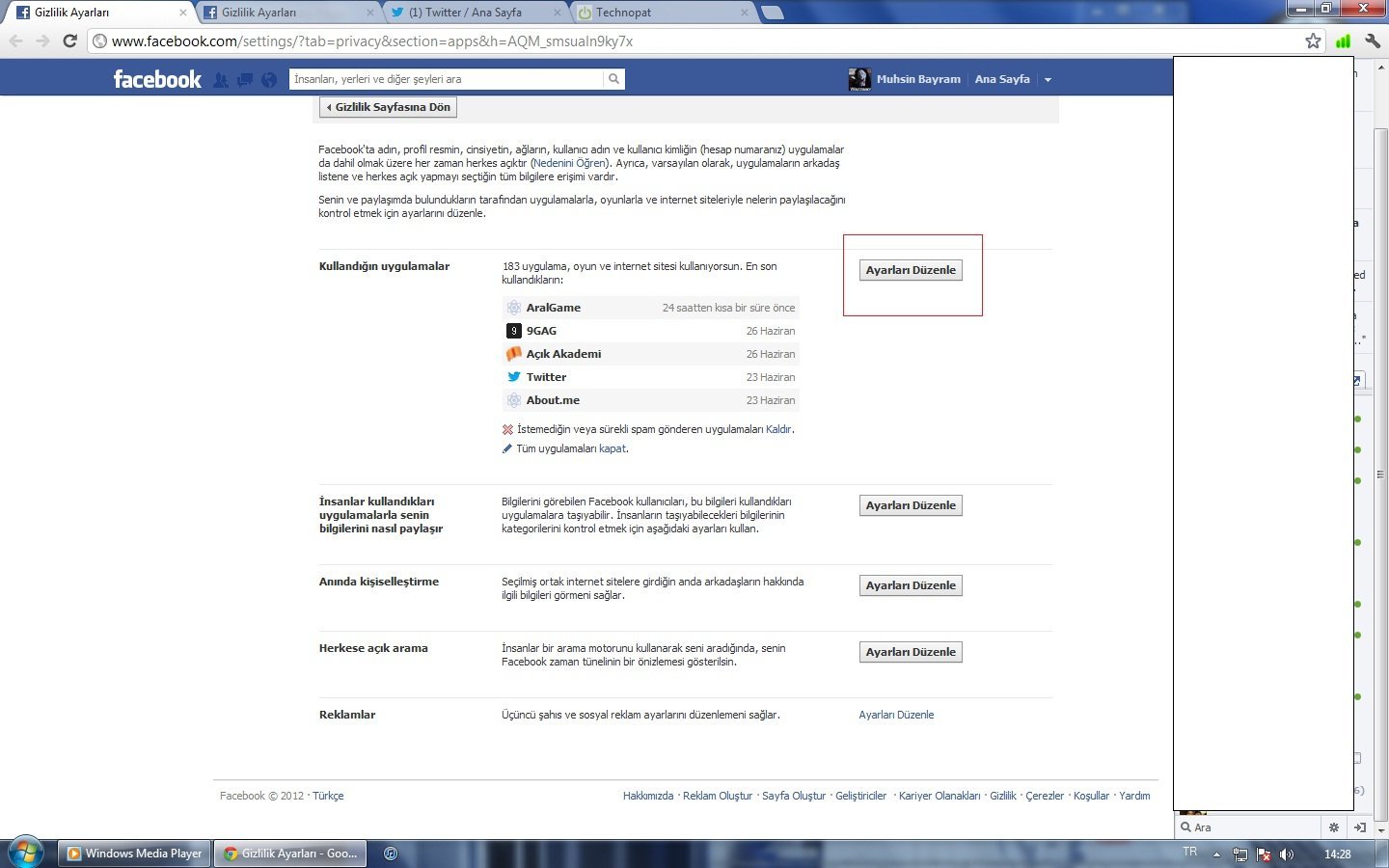 - “Kullandığın uygulamalar” bölümünde “Ayarları Düzenle” sekmesine tıklayın.