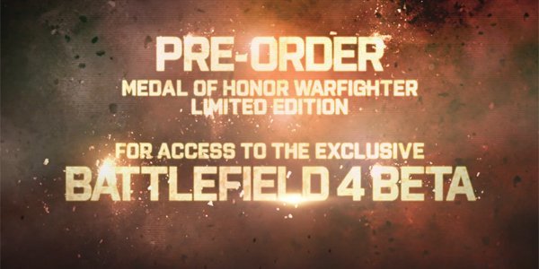 Medal of Honor: Warfighter’ı €60 karşılığında Origin’den sipariş edenler Battlefield 4’ün betasına erken erişim hakkı kazanacak. Hatırlarsanız buna benzer bir sistem 2010 yılında Medal of Honor çıktığında da yapılmıştı. Medal of Honor’ın Limited Edition sürümünü alan kullanıcılar Battlefield 3’ün betasına 48 saat erken katılma şansı kazanmıştı.