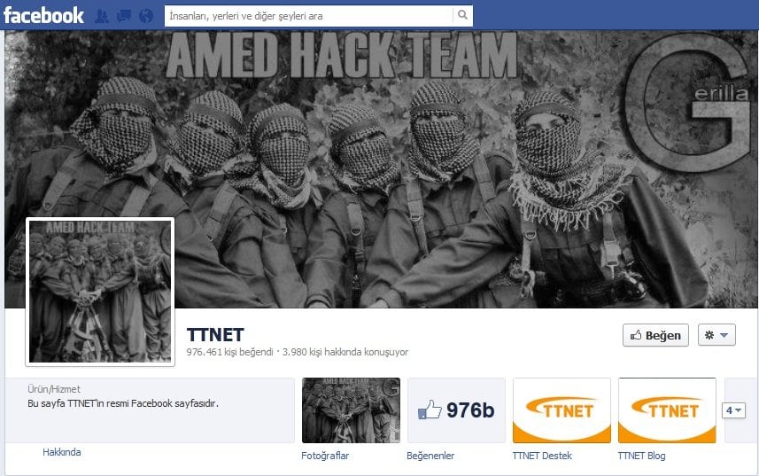 Hack rüzgârları Facebook’ta esmeye devam ediyor. Pek çok firmanın Facebook sayfası az önce hack’lendi. Firmalar arasında, Teknosa, Ülker, Nokia Türkiye, Garanti Bankası, TTNET, TTNET Müzik, Kanal D yer alıyor ve bu firmaların Facebook hesaplarındaki profil resimleri hack’lediği sanılan grup tarafından propaganda amaçlı bir fotoğrafla değiştirildi. Hack sonrası ilgili firmalardan henüz bir açıklama yapılmadı.