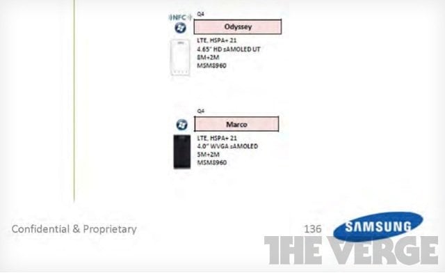 Başta nokia olmak üzere Samsung, HTC ve Huawei’nin Windows Phone 8 cihazları geliştireceği biliniyordu. Ancak şimdiye kadar bu firmalardan resmi bir Windows Phone 8 cihazı duyurusu gelmedi ve alıştığımız üzere söylentiler ve sızıntılar havada uçuşmaya başladı. Bu sızıntılar arasında en son ortaya çıkanlardan biri ise Samsung’un Odyssey’i ve Marco’su oldu.
