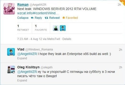 Sızıntılarıyla meşhur Rus WZOR sayesinde üzere Windows Server 2012’nin RTM sürümü İnternet’e sızmış durumda. Benzer bir şekilde dün de Windows 8’in RTM sürümü İnternet’e sızmıştı.