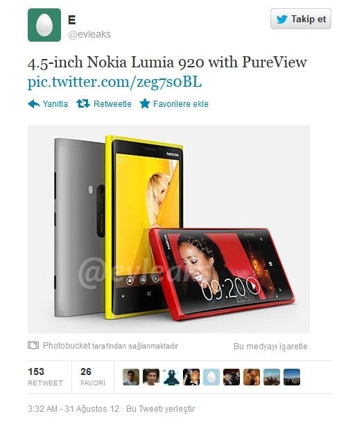 Windows Phone 8 işletim sistemi kullanacak Lumia 920’nin görüntüleri bir twitter kullancısı tarafından internete sızdı !