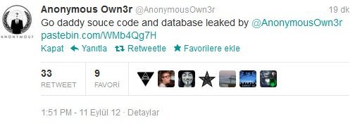 Firma bu saldırıyı örtbas etmeye çalışıyor olabilir. Elbette temennimiz GoDaddy’de güvenlik açıklarının olmadığı ve saldırının gerçekleşmediği yönünde. İlerleyen günlerde firma kararını değiştirir mi bilinmez ? Ancak Own3r adlı kullanıcı tweetter üzerinden bu işin ekmeğini yemeye başladı bile.