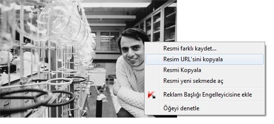 İnternette bulduğunuz resmin URL kodunu görselde görüldüğü gibi kopyalıyoruz.