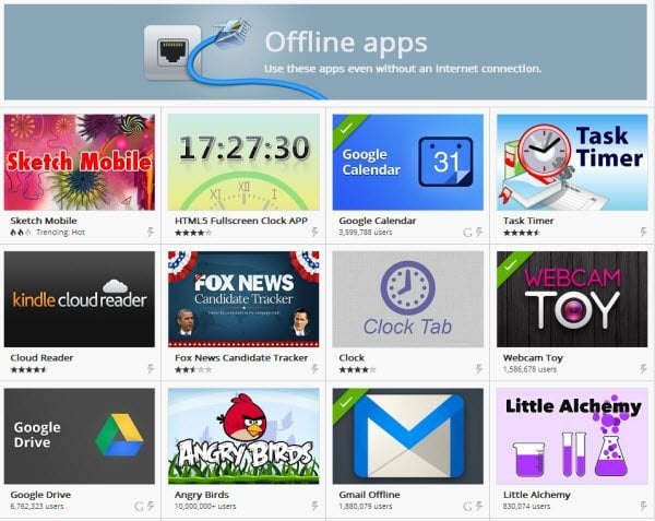 Chrome Web Store’da bulunan uygulamalar kullanıcıların çok işine yarıyor. Ancak offline haldeyken bunları kullanamamak gibi bir durum söz konusu değil. Bir kaç belirli uygulama dışında, Web Store’da bulunan hemen hemen tüm uygulamalar kullanılabiliyor. Elbette bu yazılımların daha önceden Chromebook’ta aktif edilmiş olması gerekiyor. Sadece yazılımlar değil oyunlarda offline olarak oynanabiliyor.
