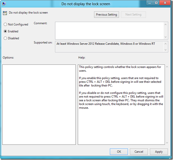 2- Computer Configuration—> Administrative Templates—>Control Panel –> Personalization kısmına gelin. Bu bölümü Local Computer Policy altından bulabilirsiniz. Ayarları yaptıktan sonra sağ taraftaki panelde 3 seçenek göreceksiniz burada “Do not display lock screen” yani kilit ekranını gösterme kutucuğunu işaretleyerek devre dışı bırakacaksınız.