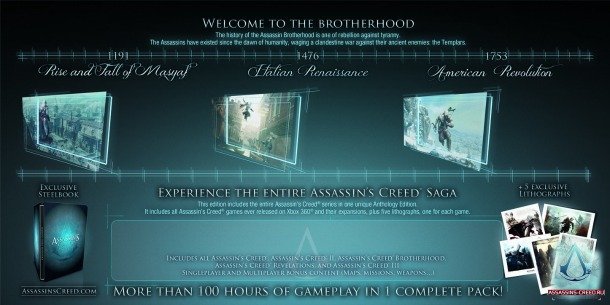 Bu sorunun doğruluğu var. Assassin’s Creed’in Rusça sitesinde, Amazon Fransa‘nın Assassin’s Creed’in 5 oyununu da içeren Assassin’s Creed Anthology’nin çıkabileceğini ortaya çıkardı. Anthology’de Assassin’s Creed, Assassin’s Creed II, Assassin’s Creed: Brotherhood, Assassin’s Creed: Revelations ve tabii ki Assassin’s Creed III yer alacak. Bununla da kalmayıp aynı paket içerisinde tüm DLC’lerin de yer alacağı belirtiliyor. Eurogamer‘da, bir Ubisoft temsilcisi, Assassin’s Creed Anthology’nin varlığını doğruladığını bildirdi.