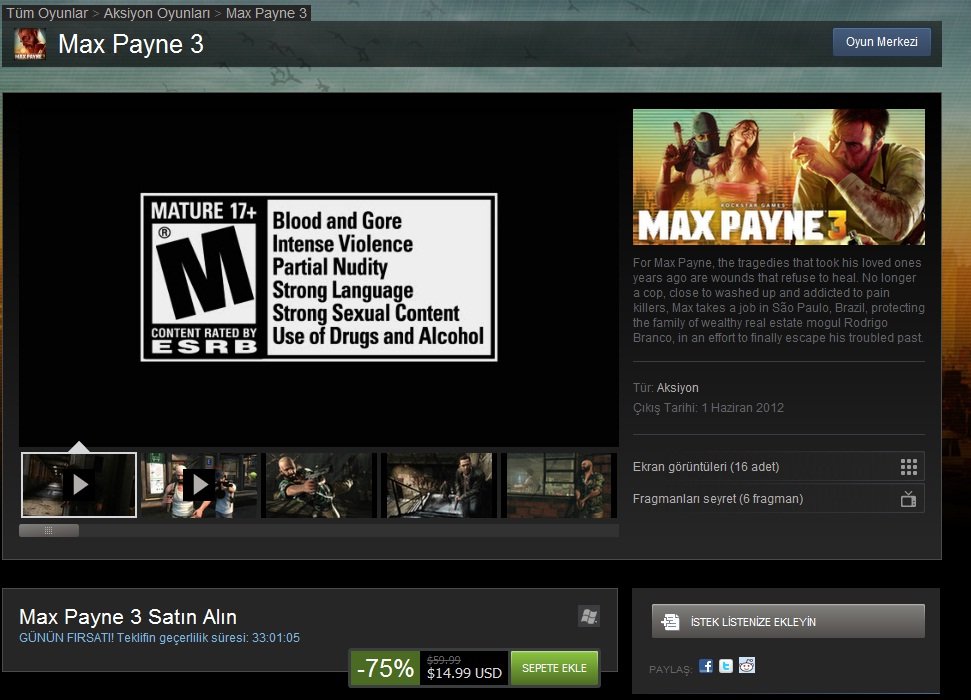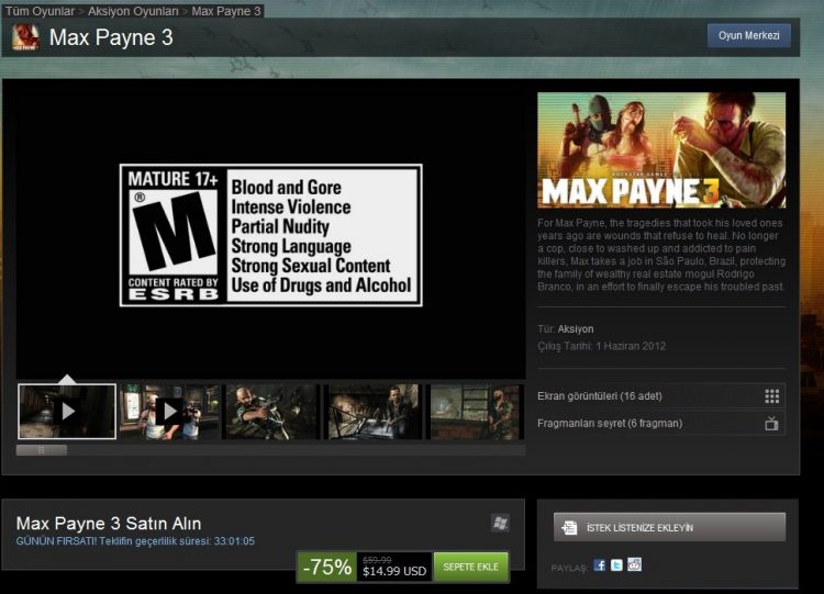 Max Payne 3 hayranları ve henüz orjinal satın alamayanlar gün bitmeden bu fırsatı yakalayın…