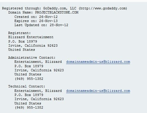 Blizzard’ın bu sefer satın aldığı alan adı ProjectBlackstone.com olarak kayıt edildi. Fusible’ın haberinde bu kaydın 26 Kasım 2012’de edinildiği ve WHOIS’de kaydı bulunduğu belirtiliyor. Blizzard’ın satın aldığı bu alan adının ne için kullanılacağı bilinmiyor. Son zamanlarda, bu tip yönelimleri olan Blizzard, geçtiğimiz Kasım ayında da, HeroesofWarcraft.co.uk adlı bir alan adı edinmişti. Aynı şekilde bu alan adının da WHOIS’de bir kaydı bulunuyor. Bakalım bu gidişatın sonunda neler ortaya çıkacak.