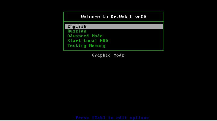 Dr.Web Live CD artık açılmaya hazır.