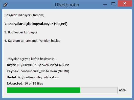 Dr.Web LiveDisk’i USB Bellekten çalıştırarak bilgisayarınızı virüslere karşı tarayabilirsiniz.