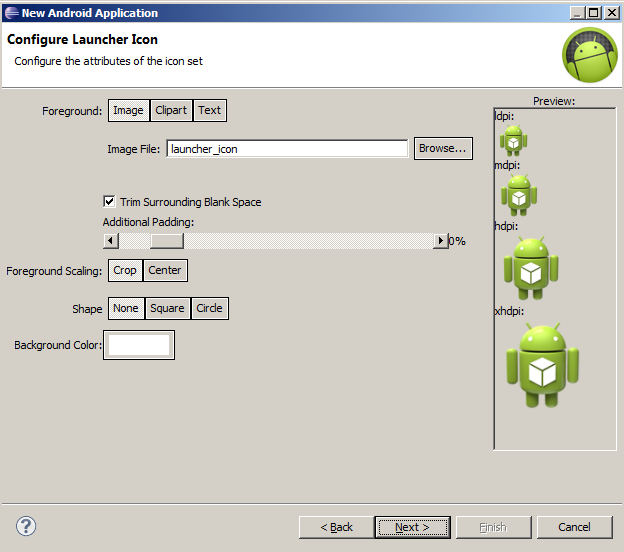 Create custom luncher icon – Projemiz için Android’in ikonunu otomatik olarak yaratacak.