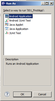 Şimdi soldan projelerimizin ismini seçelim. Ve Ctrl + F11 basalım. Sonra Android Application’ı seçelim.