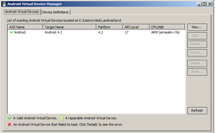 Menü Windows > Android Virtual Device Manager
