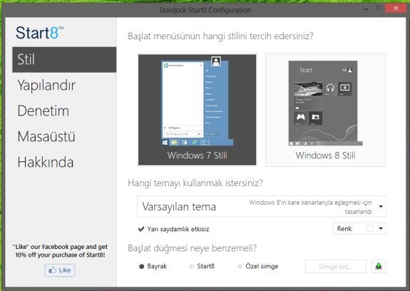 ClassicShell’de istediğiniz Başlat menüsü şeklini seçebiliyorsunuz. Klasik, XP ya da 7 tarzı gibi.
