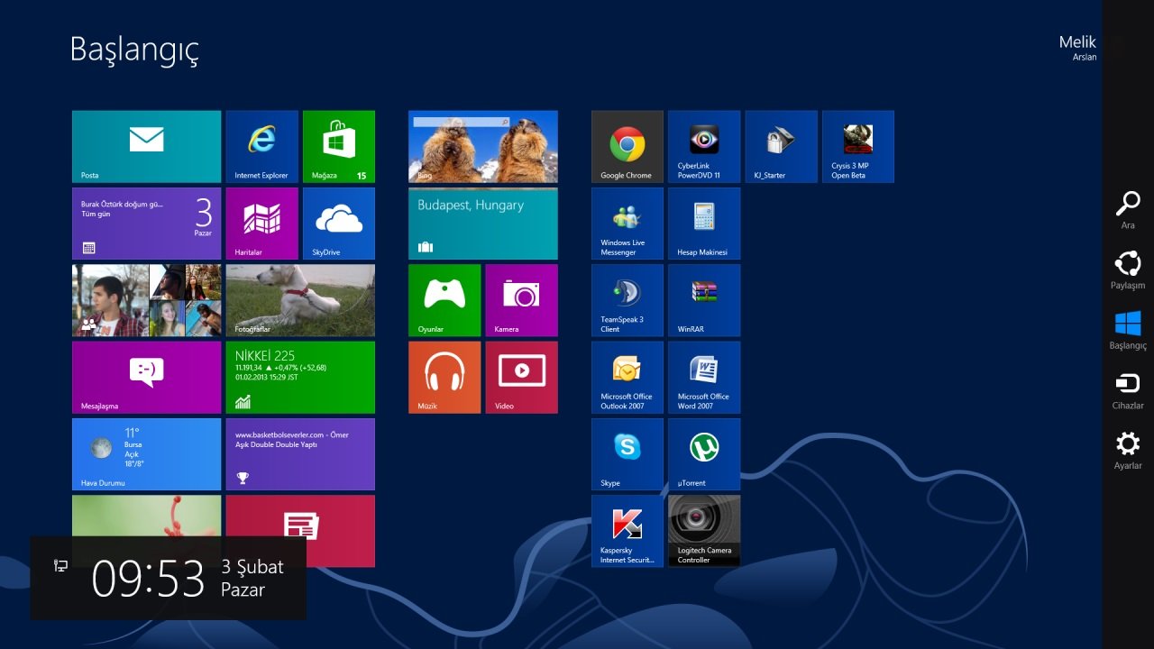 Hesabınızı ayarlamayı bitirdiğinizde, karşınıza Başlangıç ekranı gelir. Windows 8’in Başlangıç ekranı, diğer Windows’ların aksine karesel bir yapıya sahiptir. İşte tam da bu noktada işler ilginçleşmeye başlıyor. Bu ekrandaki uygulamaları, menüleri biraz kurcaladıktan sonra, yönünüzü bulma vakti geliyor.