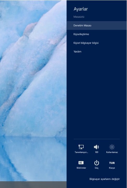 Öncelikle hızlı araç çubuğundan Ayarlar’a tıklayın ve Denetim Masası’nı açın.