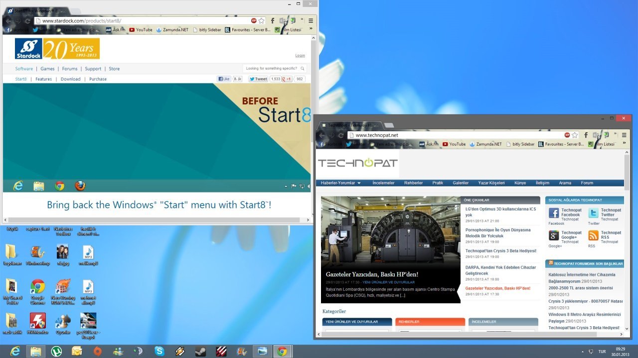 Başlat menüsünü istediğiniz gibi düzenledikten sonra favori programlarınızı ana menüye sürükleyip bırakabilir ve sanki başlangıç ekranı hiç var olmamış gibi Windows 8 kullanmaya devam edebilirsiniz.
