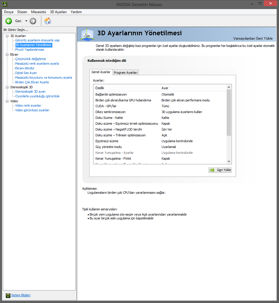 Çoğu durumda 3D seçeneklerini değiştirmenizi tavsiye etmeyiz. 3D ayarlarını oyunların içerisinden değiştirmeniz, performans açısından çok daha uygun olacaktır. Ancak bazı durumlarda kontrol panelinden bazı ayarları değiştirmeniz gerekebilir. Sözü fazla uzatmadan kontrol panellerini incelemeye geçelim.