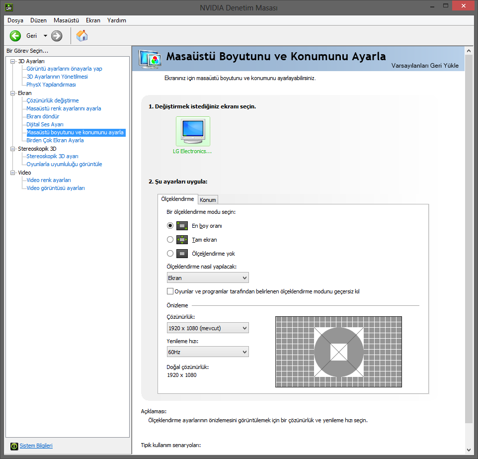 Grafik sürücülerinin kontrol panellerinde birkaç özel ölçekleme seçeneği daha bulunuyor ancak kullandığınız monitör son beş yıl içerisinde üretildiyse bu seçenekleri görmezden gelmeniz size zaman kazandıracaktır.