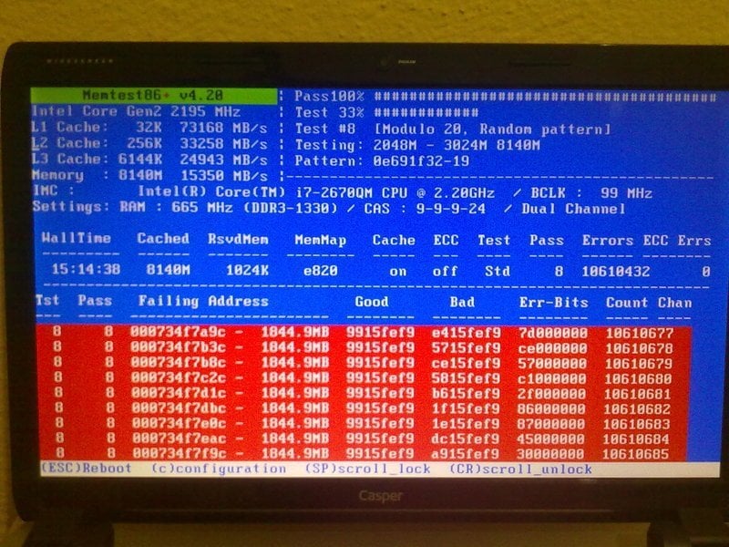 - Eğer aşağıdaki gibi kırmızı girdiler oluşursa bellekleriniz bozuk demektir. Bellek modüllerinizi değiştirin.