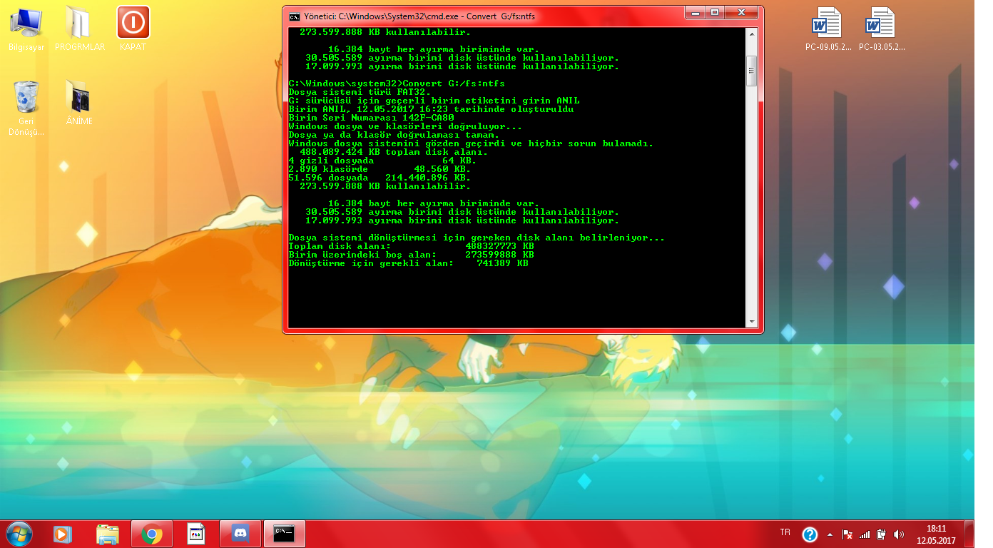 - Komut İstemi dönüştürme işlemine başlayacak ve birkaç dakika sonrasında dönüştürme işleminin başarılı olduğuna dair bir ileti görünecek.