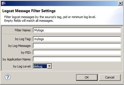 Filtrenin ismi herhangi bir isim olabilir mesela «My logs». Log Tag – bizim kodta kullandığımız Log.d metodunda TAG “myLogs”. Pid işlemin id’si boş bırakabiliriz. Log Message – mesajlara göre filtreyebiliriz. Level – seviye debug seçelim. Ve OK butona basıyoruz. Sol tarafta Mylogs sekmenin oluştuğunu görebiliriz.