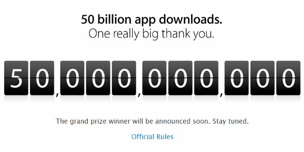 Apple, 2013’ün başında iTunes üzerinden 25 Milyarıncı şarkı satışını 10.000 Dolarlık hediye çeki ile ödüllendirmişti. Firma tarafından yapılan yeni açıklamaya göre geçtiğimiz akşam 50 Milyarıncı iOS uygulaması indirildi.