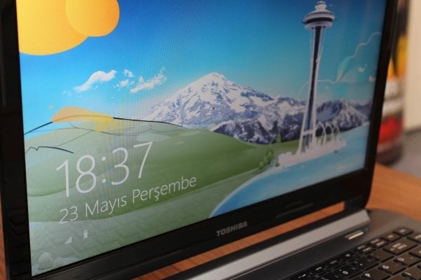 Toshiba bu modelde 14 inçlik bir TFT ekran paneli kullanmış, panelde dokunmatik özellik yok. Ekran en fazla 1366×768 çözünürlüğü destekliyor, ancak dışarıdan bir ekrana bağladığınızda, mesela bir televizyona, 2048×1536 çözünürlüğe kadar çıkabiliyorsunuz. Toshiba’nın TFT ekranı özellikle iç mekanlarda iyi bir görüntü veriyor, ancak çok fazla ışık olan ortamlarda, mesela doğrudan gün ışığı alan dış mekanlarda görüntü bariz biçimde silikleşiyor. Görüş açılarının ise pek ideal olduğu söylenemez, yan açılarda görüntü zayıflıyor ama özellikle ekrana yukarıdan baktığınızda kalite çok düşüyor. Yani ekranı tam karşınıza koymak ve dik bir açıyla bakmak lazım.