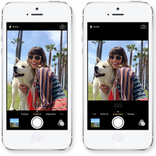 IOS7 ile beraber kamera uygulamasında da değişiklikler yapılmış. Fotoğraf ve video arasında tek bir geçiş tuşu ile çekim özelliğinin yanında HDR çekimi, panorama ve ızgara modu dışında fazla bir özellik içermeyen önceki IOS sürümlerinin aksine yeni sürümde birçok özellik eklenmiş. İlk dikkatimi çeken özellik ise fotoğraf modları arasında geçişin sürükleme yöntemiyle olması. 16:9 formatının yanında aynı zamanda kare (1:1) formatı da getirilmiş. (1:1) özelliğini Instagram resimlerinden hatırlayabiliriz. Instagram uygulamasında çektiğimiz resimleri keserek 1:1 yanı kare şeklinde getirmemiz gerekiyordu. İste Apple buna gerek kalmadan direk olarak bu şekilde çekim yapabileceğimiz bir mod koymuş. Bunun ne faydası olabilir derseniz, çektiğiniz resimleri sonradan kesmek zorunda kalmadan, merceğin içinde hangi görüntünün olacağını görerek çekim yapabilirsiniz.