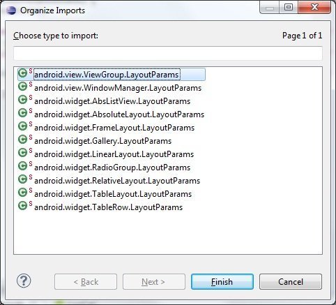 Tekrar Eclipse dönelim ve ViewGroup.LayoutParams temel klası seçelim.